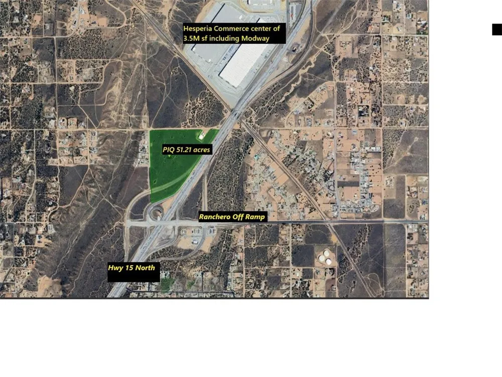 Idyllic location! Highway 15 frontage! Positioned at the entrance of the High Desert for signature development opportunities! Approximately 52 acres of land along Caliente Road will provide amazing commercial exposure for the businesses that occupy this location! AND the City of Hesperia has just updated the land use as commercial and multi-family residential which can accomodate hospitality with retail, so the possibilities with this property abound! This one and only gateway property is strategically located along Highway 15 Ranchero Road offramp which leads to the master planned community of Silverwood and includes 15,000 residential properties. Also a short distance from the property is the 395 Freeway, which leads directly north to SLCA, a transportation hub in the Mojave River Valley region. Area development is booming, and this location is surrounded with industrial and logistics developments, and the Hesperia Commerce Center One, which includes a 3.75 Million square foot development that is approved and operating and includes the one million square foot Modway development. Already in the works, the Hesperia Commerce center project Two on Hwy 395 encompasses another 3.75 million square feet and is currently in its entitlement process. All of this within a 5 mile radius. Locally, Sam’s Club has acquired a 6.5-acre property west of the I-15 on Amargosa Road and Key Pointe Avenue. As the first Sam’s Club in the Mojave River Valley region, this acquisition represents a significant addition to the City’s growing retail landscape, enhancing the shopping experience for Hesperia’s residents and neighboring communities. Currently, the project is in the entitlement phase, with the City collaborating closely with Sam’s Club through the required approval processes. All utilities are to Caliente Road, including the sewer line.